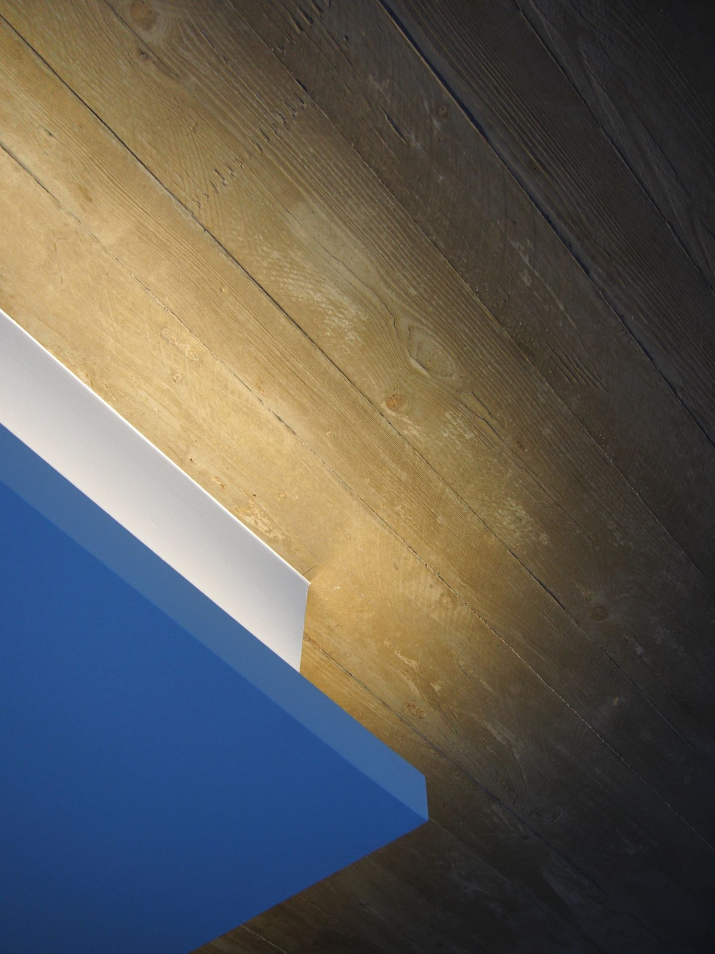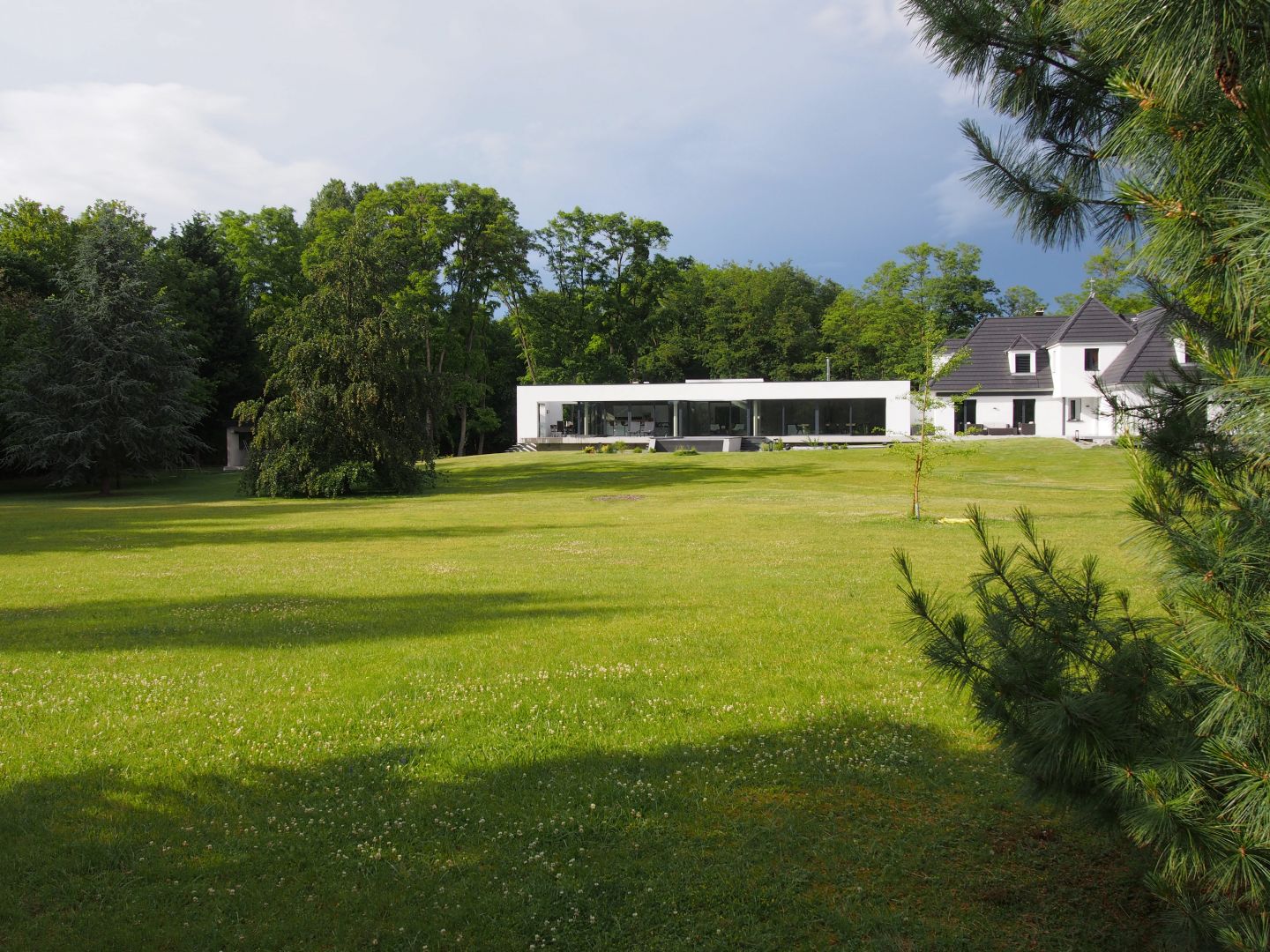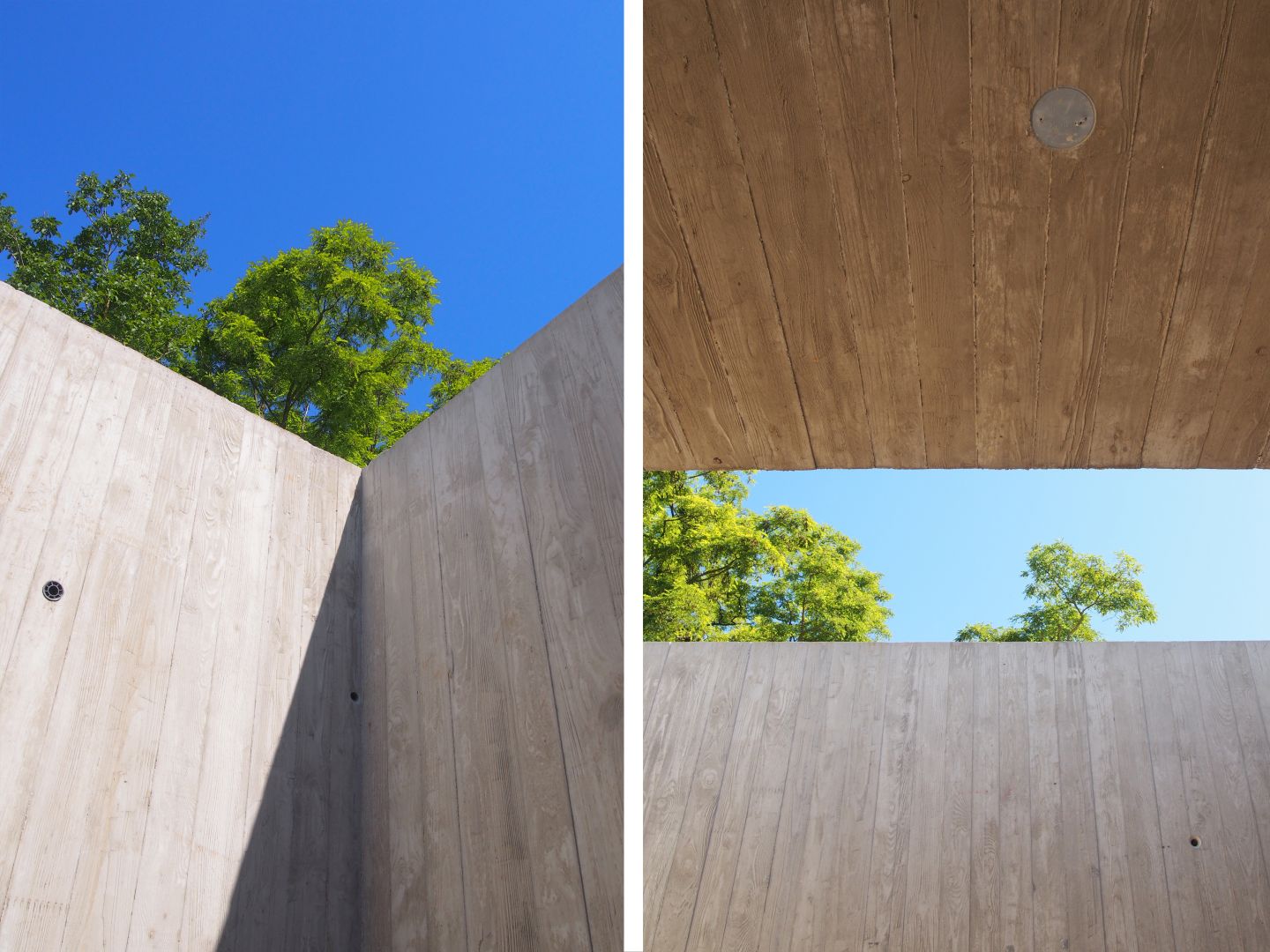 En effet, le contraste est ici multiple, et si le projet semble s'imposer dans son contexte comme un monolithe blanc immaculé, il est en réalité le lieu d'une transition marquée entre le "dedans" et le "dehors". Vu depuis le jardin, l'édifice affiche une géométrie pure, simple et radicale, "minimaliste" en un mot. Néanmoins, à l'image du corps humain, cette enveloppe n'est que l'épiderme du projet. L'intérieur est à ce titre bien différent de ce que l'on observe à l'extérieur, donnant au béton l'opportunité de s'exprimer pleinement, dans toute sa variété, dans toutes ses nuances, tantôt lisse et brillant, tantôt organique et plein d'aspérités.